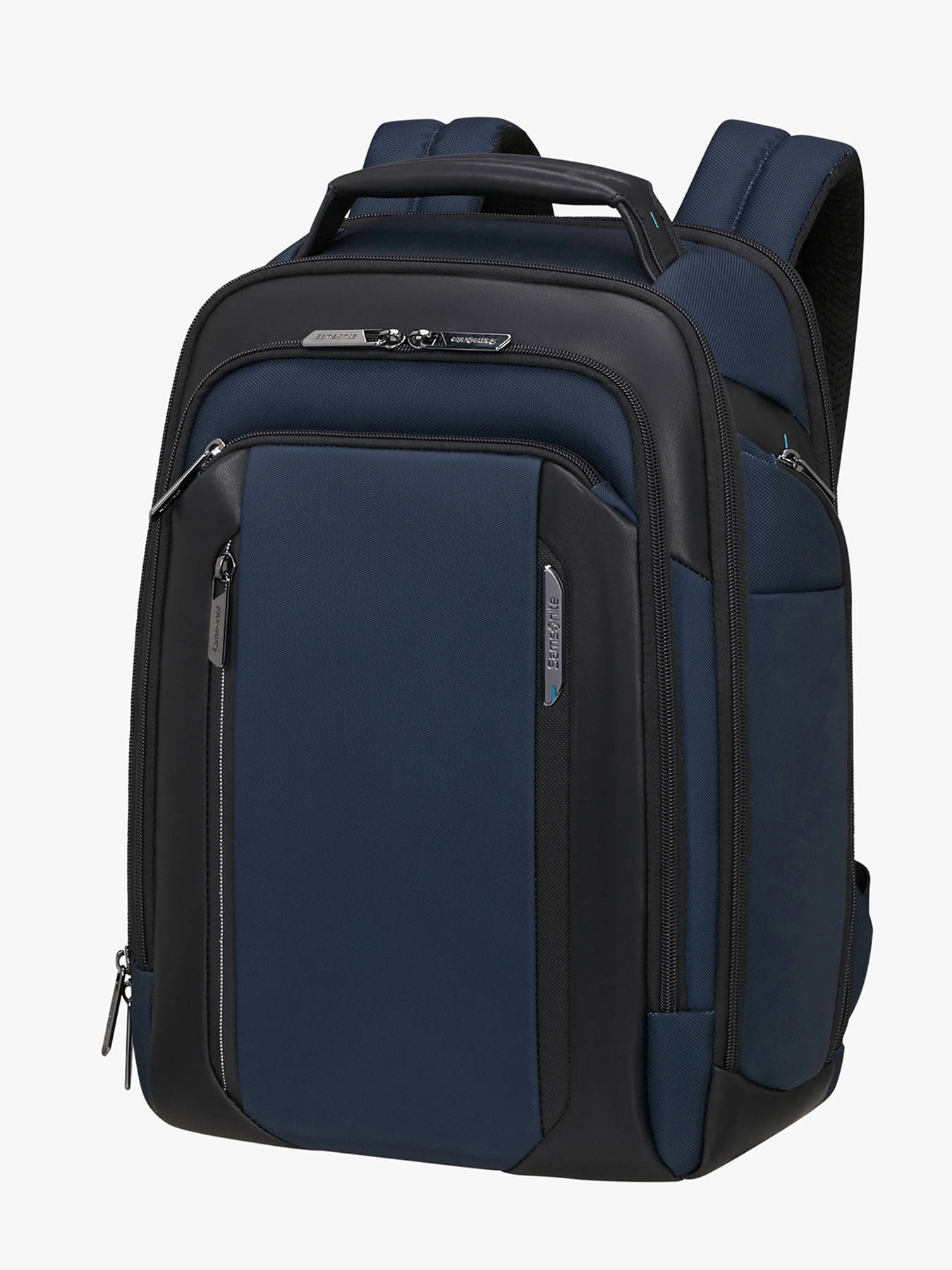 The Samsonite Spectrolite 4.0 business backpack sets a new standard for modern professionals. Crafted from Strentex™, a high-tech fabric made from 100% recycled PET, it offers exceptional resistance to abrasion and tearing while remaining water-repellent. This 17 L model fits a 14.1"" laptop and a 10.5"" tablet in dedicated padded compartments. Its standout feature is premium organization: 6 external pockets, including a hidden back pocket and RFID-protected pockets to safeguard your cards against fraud. The Easy Pass system allows cables to pass through compartments, enabling device charging on the go. For travel comfort, it features ergonomic shoulder straps, a sternum strap, and a smart sleeve for luggage attachment. Customizable with included stickers, the Spectrolite 4.0 is the ultimate professional tool, perfectly blending durability, advanced security, and refined style for the boardroom and beyond.