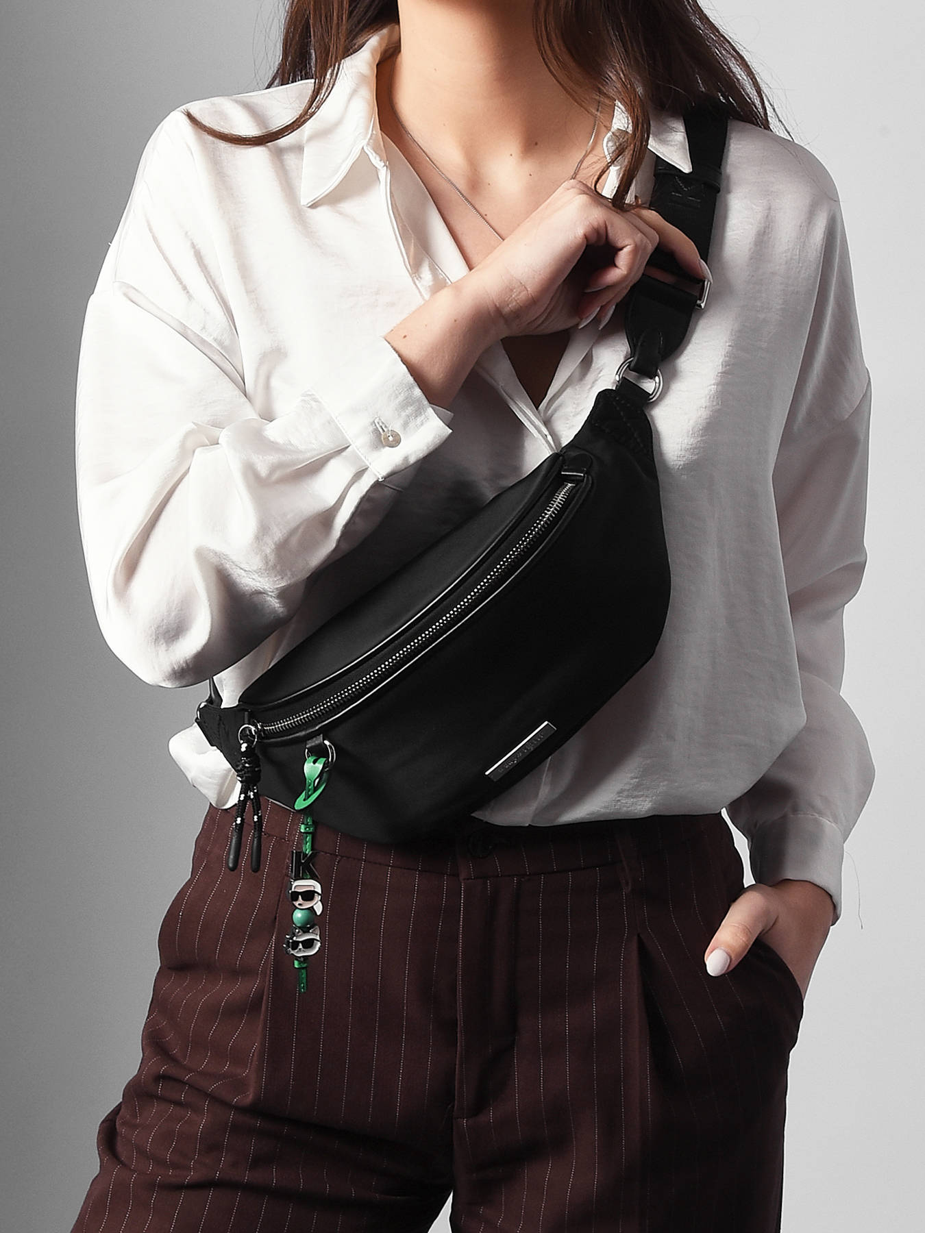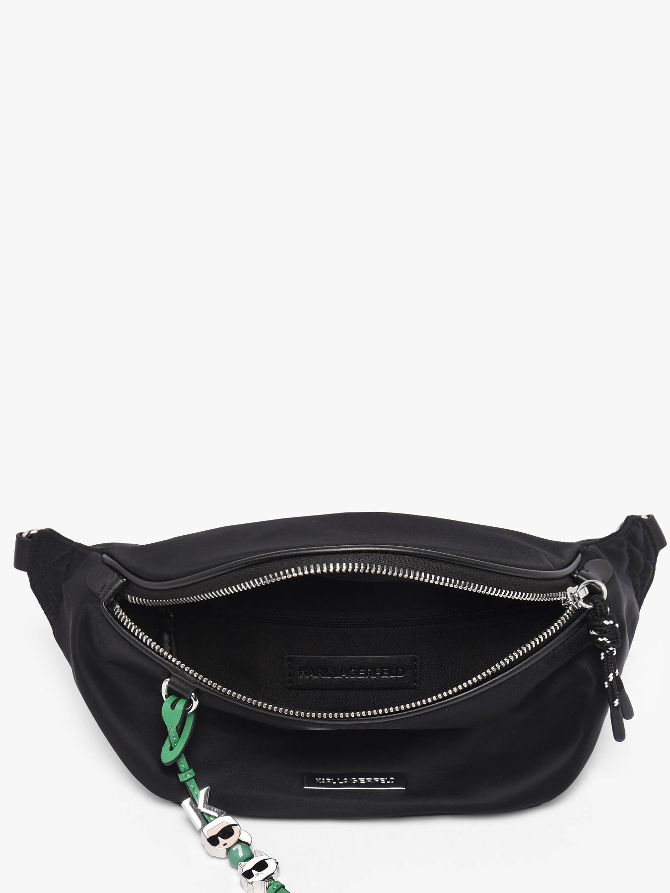 The K IKON KARL LAGERFELD belt bag, made from recycled polyester, combines modernity and eco-conscious commitment. Its zip closure ensures optimal security for your belongings, while the adjustable strap offers comfortable wear at the chest or crossbody, according to your preference. Compact yet functional, it features a spacious main compartment with an inner zip pocket, perfect for organizing daily essentials. Lightweight and practical, this belt bag fits perfectly with an urban and dynamic style, embodying KARL LAGERFELD’s bold and contemporary spirit. Ideal for keeping your essentials close while staying trendy, it will be your perfect companion on the go.