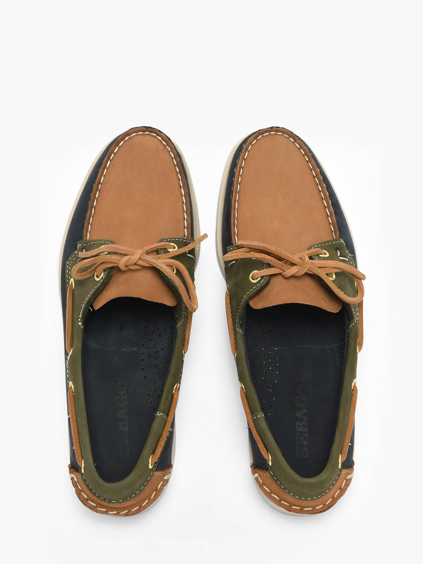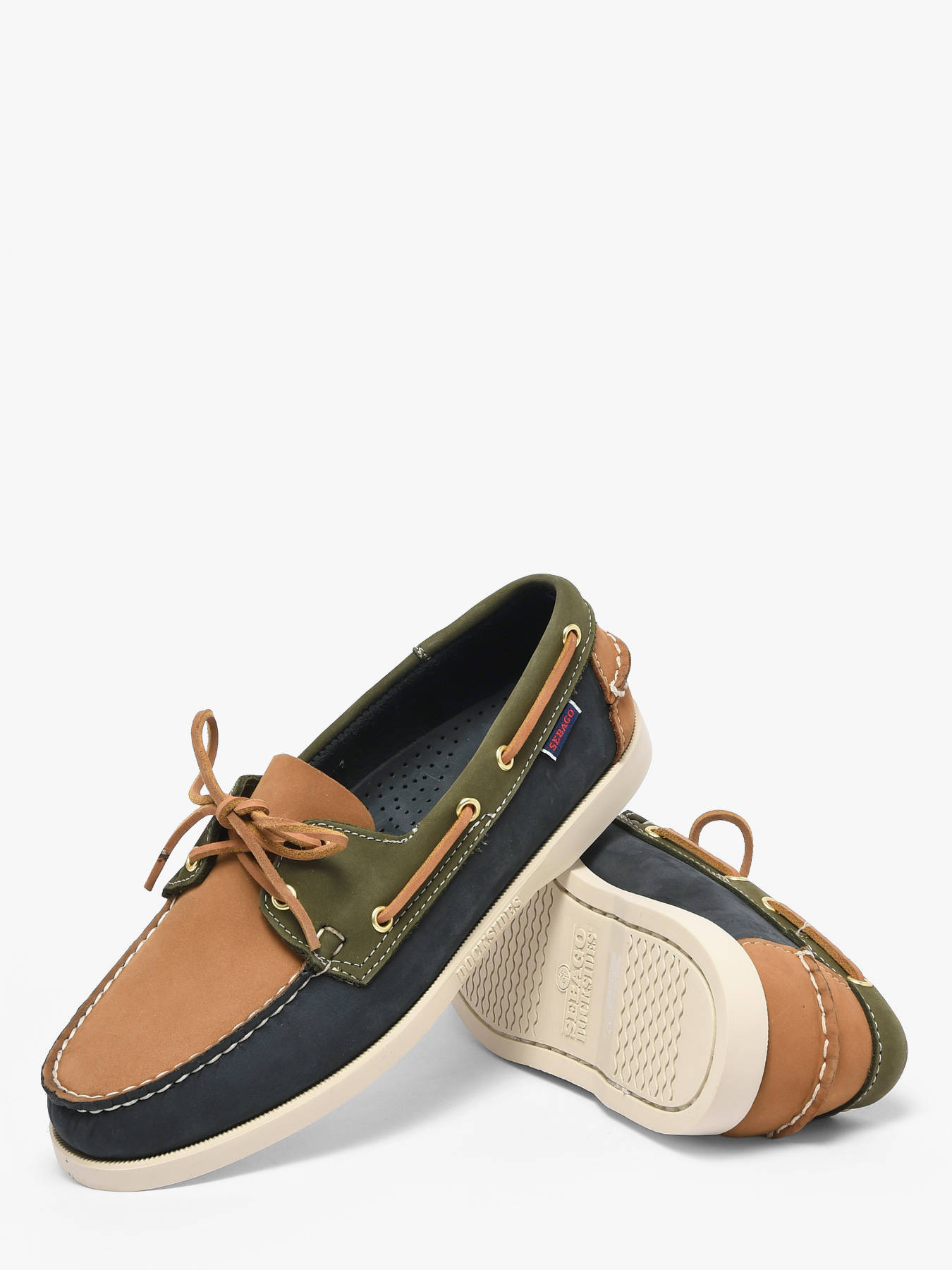 The Sebago Spinnaker boat moccasins embody nautical elegance with unmatched comfort and durability. Crafted from nubuck and full-grain leather, these moccasins feature a tricolor design in Navy, Beige, and Khaki, hand-stitched with exceptional artisanal expertise. The leather lining and 360° raw leather lacing system ensure perfect fit and optimal comfort. Non-marking rubber outsoles with grooves provide stable grip in all weather conditions. Inspired by Portland, New England, and its famous Yacht Club, the Spinnaker moccasins combine style, functionality, and authentic maritime heritage.