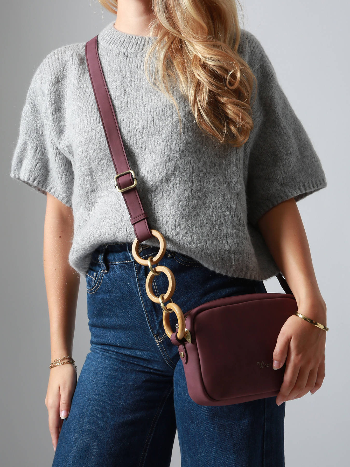 The WOOMEN crossbody bag from the HELICONIA line, in a camera bag shape, combines modernity and functionality with its subtle ring details. Made of polyurethane composed of 58% recycled materials with a cotton and linen lining, it features a back pocket, a single compartment, a slip pocket, and a zip pocket. Its adjustable strap ensures comfortable crossbody wear, making this accessory a stylish and responsible essential.