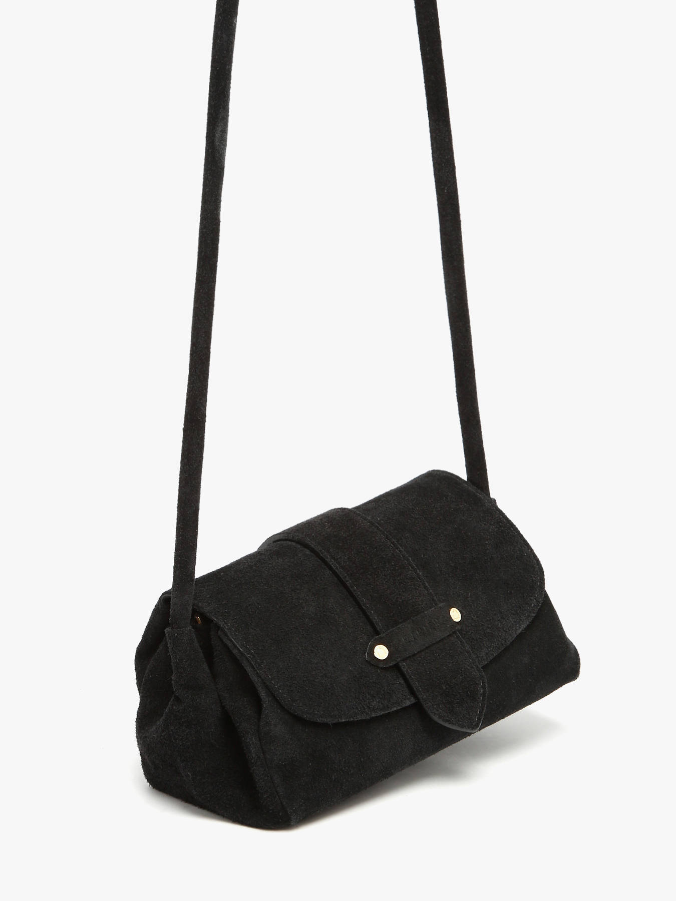 The AGNES crossbody bag by ETRIER is crafted from Italian suede leather, offering a soft and refined texture. This model is shown here in size S and features a flap closure secured with a magnetic snap button. It is also available in size M for those who prefer a roomier option. The bag includes a reversible tab featuring one gold side and one side in matching leather, allowing for easy personalization. It attaches effortlessly with two collar buttons and can be discreetly slipped into the dedicated back pocket when not in use. The interior, fully lined in gold leather, features three compartments, including a central zipped pocket, allowing you to organize your essentials with both practicality and elegance. The structured base ensures optimal support and maintains the bag's shape during daily use. The ETRIER logo, embossed on natural leather and accompanied by a small French flag, serves as a subtle marker of craftsmanship. The leather shoulder strap measures 130 cm upon delivery and can be easily adjusted using the discreet knot inside the bag—simply untie, adjust, and re-tie to achieve your ideal length. This model combines French craftsmanship, premium materials, and refined practicality. For even more personalization, explore our selection of animal-print statement tabs available on our website.
